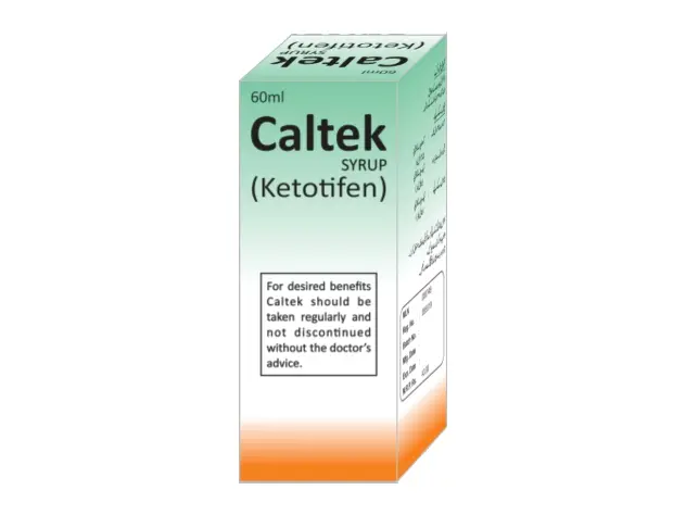 Caltek Syrup contains Ketotifen as Fumarate, an effective non-bronchodilator anti-asthmatic and antihistamine used to prevent and treat allergic conditions.